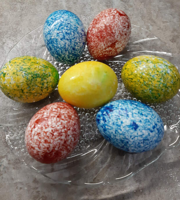 С детства люблю этот праздник, вернее подготовку к нему!Особенно когда мы помогали родителям красить яйца. Для нас отдельно варили яйца и мы их украшали различными рисунками. Обычно мы это делали фломастерами, либо красками. С годами, из - за отсутствия времени, фантазия поубавилась и в основном красили луковой шелухой, либо украшали их термоплёнкой. Недавно узнала очень простой способ покраски яиц с помощью риса. #пасха #пасхальные яйца #пост #быстрый рецепт #рецепт Для этого понадобится: ПРИГОТОВЛЕНИЕ: Приготовить одноразовые стаканы, либо ёмкости из - под сметаны, йогурта, маргарина и т.д. В идеале - с крышками. В стаканы положить сухой рис. Добавить красители - каждый цвет отдельно. Обратите внимание: Готовим безумно вкусные панкейки. Легко, быстро и бесподобно!. Яйца помыть, предварительно отварить, немного остудить. Почти тёплые яйца, отправить к окрашенному рису. Встряхнуть ёмкости, чтобы яйца окрасились со всех сторон.